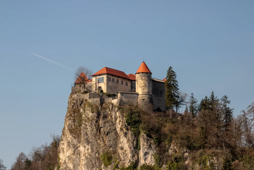 Mentre ci facevamo strada tra la folla di visitatori che animava le sponde del lago, il mio sguardo è stato subito catturato da una visione quasi irreale: il Castello di Bled, arroccato con fierezza sulla cima di una maestosa parete di roccia che sembrava tuffarsi direttamente nell’azzurro dell’acqua.